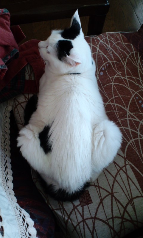 暗がりではっきりと柄を見ていなかったのですが、雑種でしょうがなんとなくアメリカンショートヘアーのような柄をしています。顔は全然違うのですが・・・。