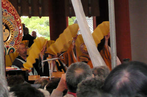 5月4日 四天王寺で授戒灌頂を受けてきました。 早く言えば即身仏と言う事ですが、まぁ、死んでミイラになり永遠に仏に仕えると言うわけではなく、在家の仏弟子と言った事でしょうか。 僧になる時『得度』すると言いますが、この授戒を受けて僧侶の資格を得るんです。授戒と言えば思い出すのが鑑真和上ですが、聖徳太子の頃、仏教伝来とともに授戒も伝来しておりまして、聞くところによると当時は極秘に公開されないで為されていたそうです。密教系の匂いのする授戒儀式は怪しきことこの上ない作法でした(笑) 四天王寺五智光院と言う場所で授戒を受けます。 なぜ授戒を受けたかと申しますと、実は戒名を頂けるんです。 以前は泊まりがけの二日修行だったようですが、現在では日帰りとなっておりました。 主人と主人の妹夫妻と共に行ってまいりました。 戒名と言うのは死後、院号だけで4-50万は必要となります。 今回頂いた戒名は二文字。 受けにくる人はやはり60代以上の方がほとんどで、中には25年目と言う方もいらっしゃって、いったい幾つから授戒を受けているのだと驚いておりました。