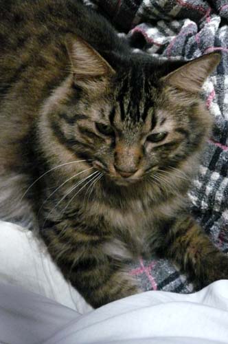 ネットから遠のいている一番の理由はコイツ。私の席を陣取ってのいてくれない。無理矢理どかしても、チヨッとでも立てば陣取っている。座っていても、無理矢理隙間にはいりこんでくるブタ猫ナナ。たいてい、負けて私が立ち退くありさま。面倒だわ。