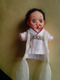 大学から帰宅した娘が取り憑かれたように完成させた孔明キューピー(笑) 私が担当したのは着物のデザインと襟の部分、そして着物制作の半分だけ。 いっそNETで売れば売れるのではないかと密かに考えてたりして(苦笑) |