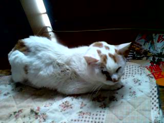 凶暴で、番犬より恐ろしいと言われていた猫ですが、もう、口内炎も酷く、体温調節も出来ない状態です。